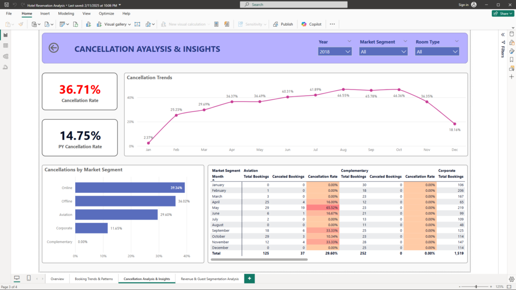 - Detailed Matrix: Providing a granular, monthly breakdown of cancellations by market segment for deeper investigation.