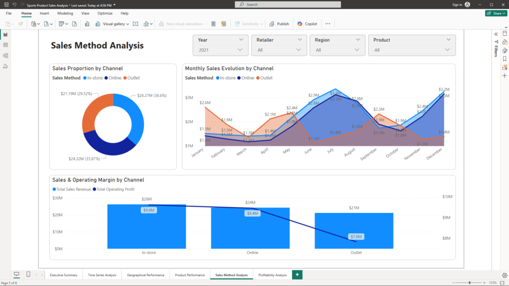 - Advantage: Provides a dual view of sales performance and profitability across channels, enabling a deeper analysis of channel efficiency.